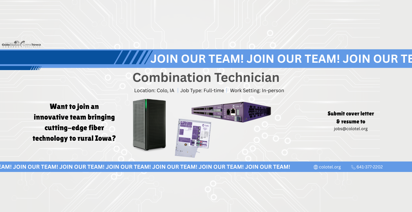 Colo Telephone Company and our affiliate Central Iowa Broadband have a proud legacy of serving rural customers, combining strong financial performance with quality products, reliable services and exceptional customer service.